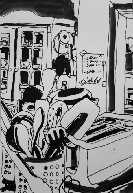 Sous Hoher Kopf, en bord du Bad Bergzabern Mundat, il y a le Langenberg,das Schloss die Wäscheklammern, le château des pinces à linge.Ici , il y a des pinces à linge qui sur leur bois portent des prénoms,écrits en noir, en blanc, en rouge, en vert,quelques-unes bariolées, avec du fil roseparfois quelques traits, des signes, des motifsla peinture effacée, ayant bavéeappliquée, fine avec un feutre usébrouillonne l’écriture , décidée , centrée,au lettrage travaillé.Elles sont dans tous les sens.Les pinces à linge sont neuves, petites, grandes,anciennes, droites, penchéespinçant le fil du bout du bois,le serrant à pleine machoire,s’alignant presqu’à lui,montant au ciel ou descendant au sols’espacent un peu, s’opposent,par la droite parallèles perpendiculairesdans tous les senss’accrochent au fildes pinces à linge autant qu’il y a de personnespeut-être que des gens sont partis et qu’il reste juste des pinces à linge ?Elles serrent toutes le fil, le fil de fer, le fil à linge non le fil électriqueElles tiennent au fil, se frôlent, se touchent, s’éloignent,forment une guirlande ordonnée et librequi descend, qui monte, qui tourne se répondde chaque côté de la portequi fait un peu couronnesur un fil, suzammen.